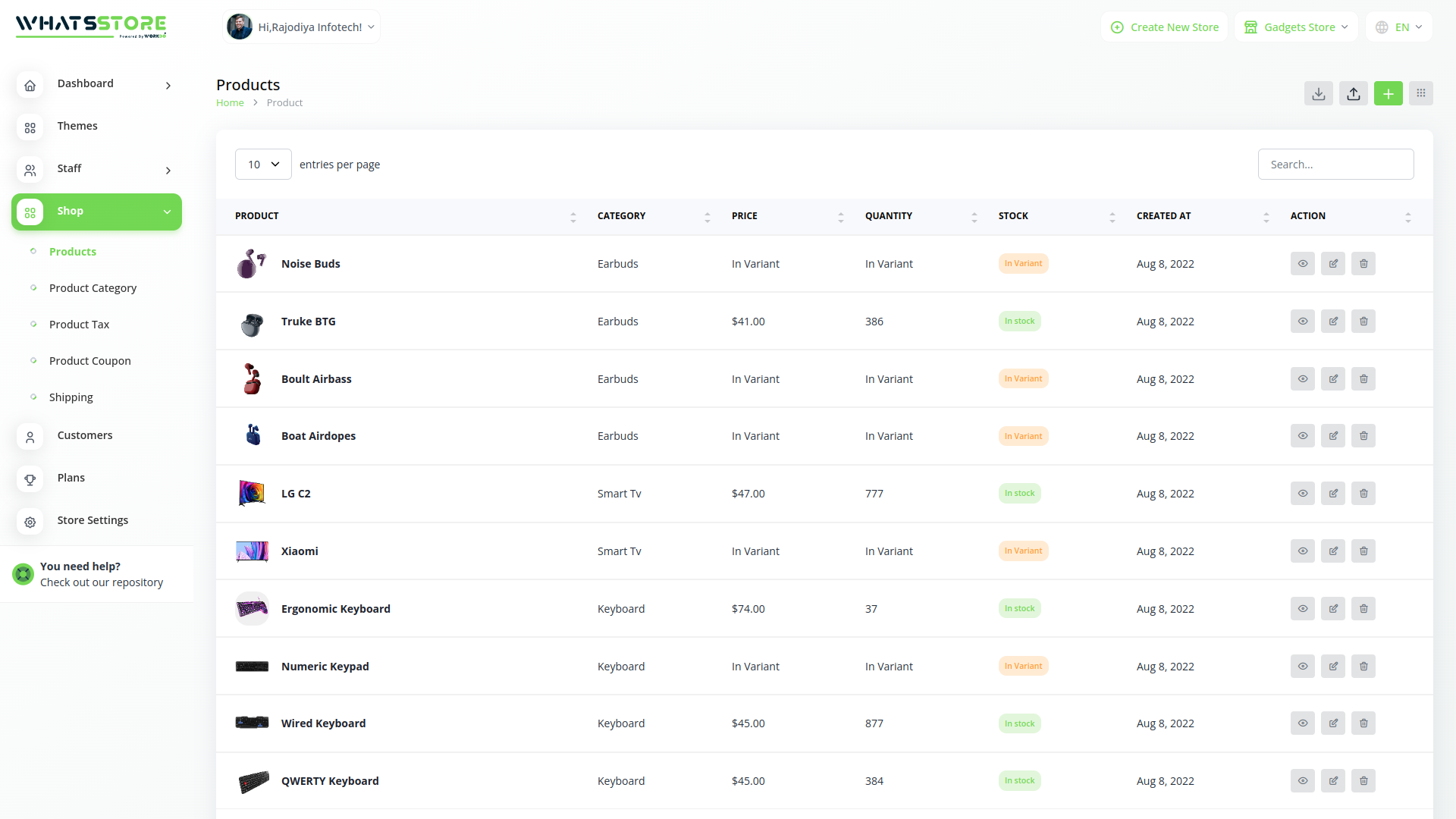 WorkDo seCommerce package offers you a “sales-ready.”secure online store. The package puts all the key pieces together, from design to payment processing. This gives you a headstart in your eCommerce venture. Every store is built using a reliable PHP framework -laravel. Thisspeeds up the development process while increasing the store’s security and performance.Additionally, thanks to the accompanying mobile app, you and your team can manage the store on the go. What’s more, because the app works both for you and your customers, you can use it to reach a wider audience.And, unlike popular eCommerce platforms, it doesn’t bind you to any terms and conditions or recurring fees. You get to choose where you host it or which payment gateway you use. Lastly, you getcomplete control over the looks of the store. And if it lacks any functionalities that you need, just reach out, and let’s discuss customization possibilities